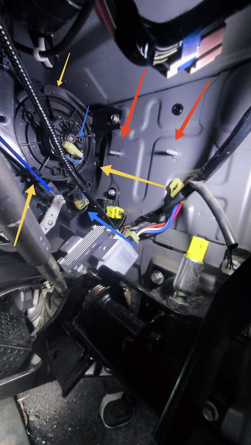 ③コネクタを抜く。抜いた際に奥のコードを取り回しの輪っか部分から抜いて脇によける。